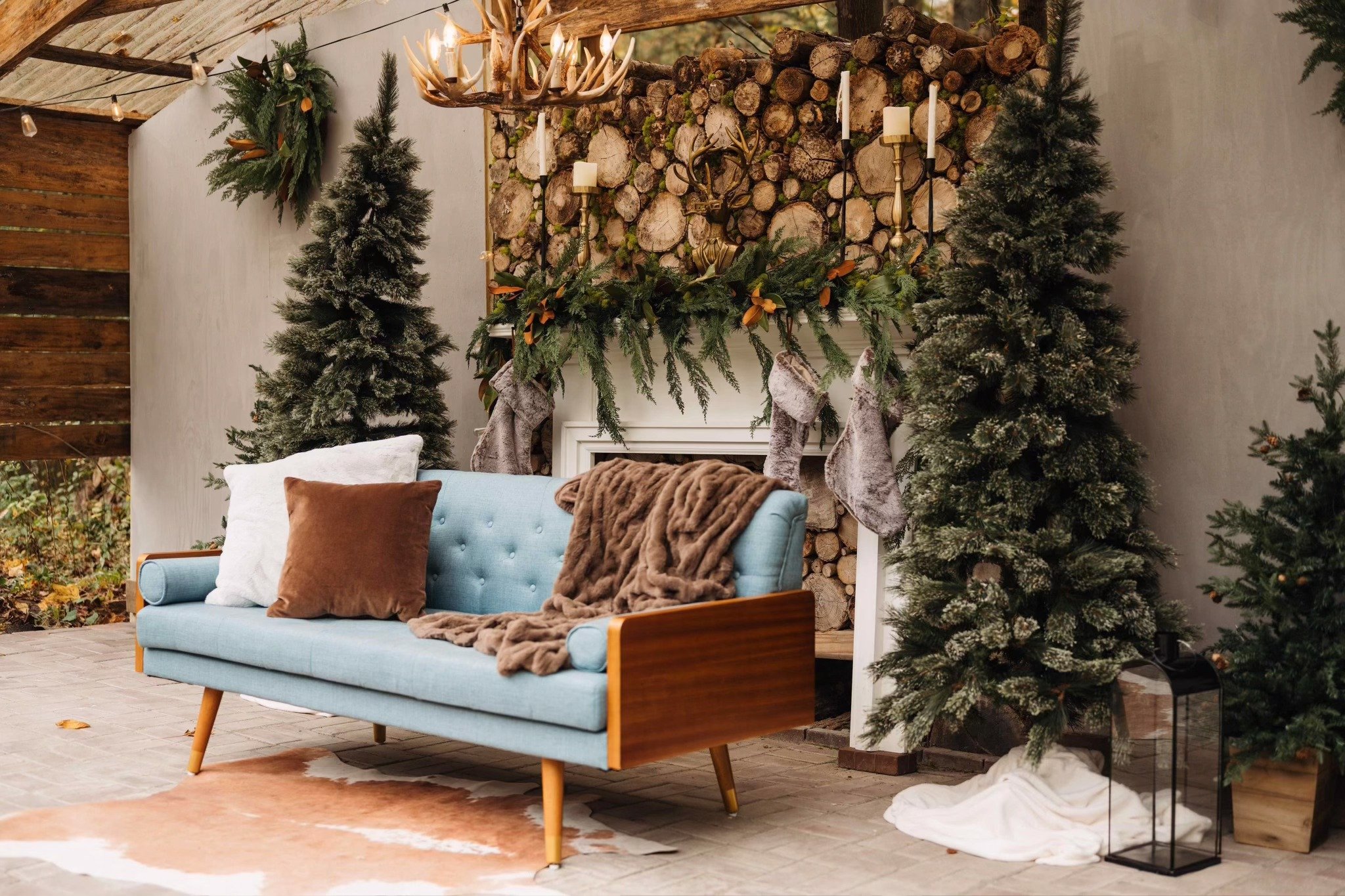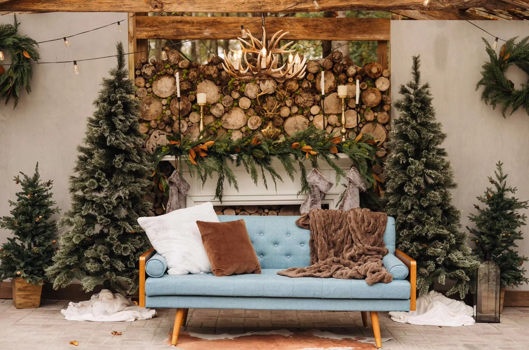 If you prefer a more rustic charm for a Christmas mini shoot, the Christmas Log Wall setup is a must have. Think blues and browns and the warmth of a fireplace.
