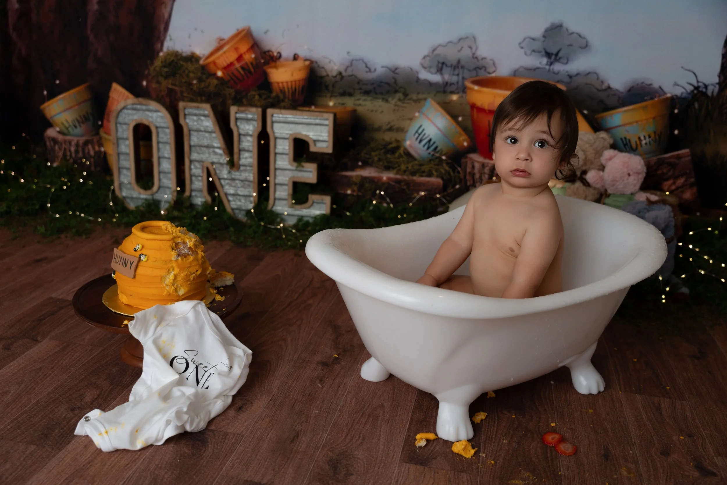 The session starts with some personality portraits and quickly moves into snapshots of the cake frenzy! Some little ones go straight for the handful and others are a little more cautious before their taste test, the chaos varies but the smiles are always pure joy. And if there are tears and overwhelm with the cake smash itself it’s ok, because we follow everything up with a fruit bath and babes almost always feel relaxed enough to splash and play. I find it all to be such a silly and playful representation of the people they are becoming, alongside a fun-for-the-whole-family memory you get to cherish forever.